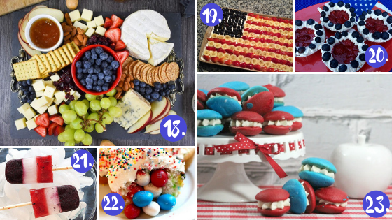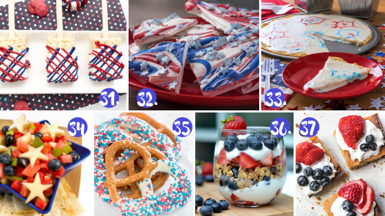 Most of the red, white and blue recipes shared below are super simple. So simple that you can get the kids involved as you prepare them. Or even leave some of the treats unmade, so that the guests can enjoy preparing them, themselves.